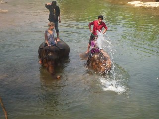 To get up on the elephant, the mahouts told them to sit down for us and we climbed up onto the necks. The elephants then walked down the steep hill into the river where they waded out for a fair way until it way deep enough. Then they were given the command, and their trunks went into the water, sucked up the water, and sprayed it at me as I was sitting there. I was completely drowned and I have never laughed so much in my life! The elephant kept doing it over and over and I gave his neck a wash by rubbing his thick, coarse skin. She sat down at one stage and when she reared up with her trunk I almost fell off and the mahouts were laughing their arses off. This was the most amazing thing ever and if I though that my day could not have gotten any better after the ride I was completely mistaken. This is one of the most incredible things I have ever done, and like all good thing, it was over too soon.