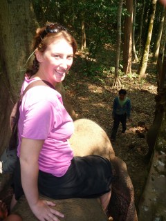 The hour and a half went too quickly and the experience was somewhat surreal. I was so glad that I had the opportunity. We said goodbye to Huong Huol and headed down for lunch at the hut. After shoveling down lunch, we sat in eager anticipation of bathing. After about twenty minutes, we were told that it was time to go. We walked half way back around the track to the river and there were our elephants waiting for us. The woman took our bags, shoes and cameras for us and we went to climb aboard.